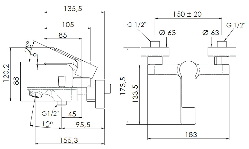 Длина излива155 мм
