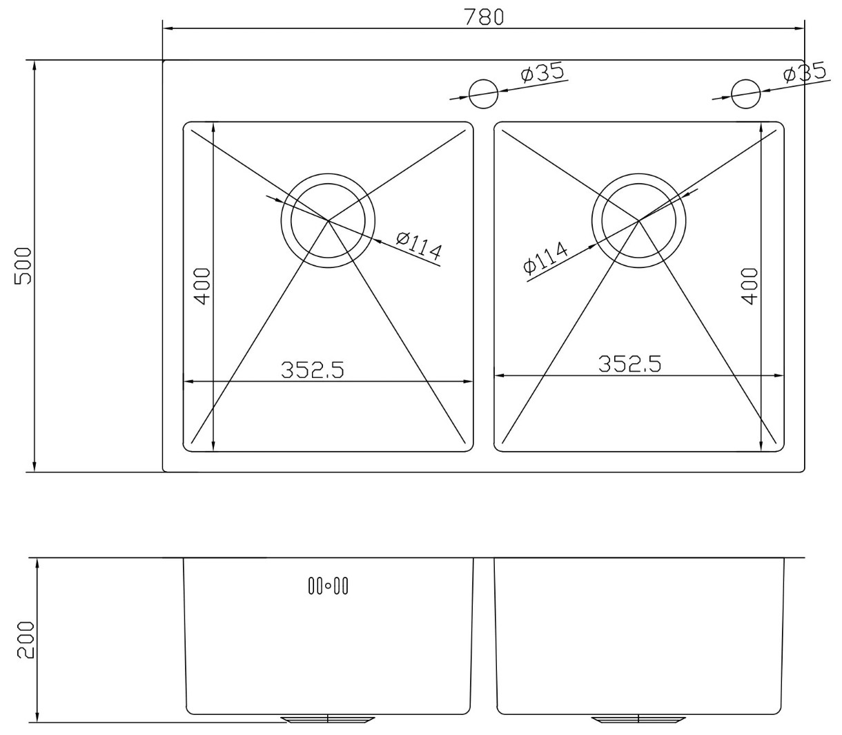 Размер мойки780х500 мм