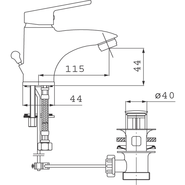 Высота излива44 мм