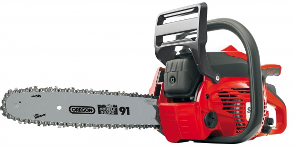 — Оригинальная пильная шина 35см торговой марки «Oregon» и специальная пильная цепь 3/8″ с просто настраиваемой системой смазки цепи.