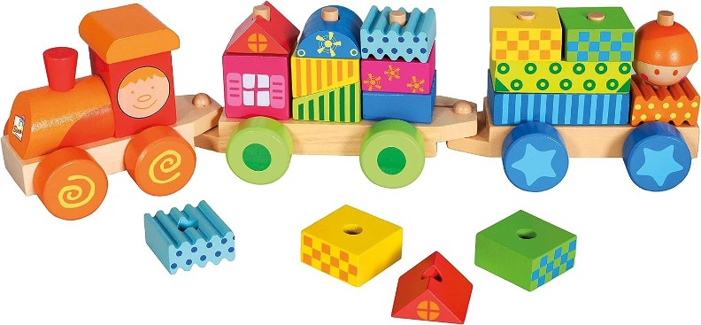 Деревянный поезд для маленьких строителей с кубиками ярких цветов. Множество вариантов использования - например, конструктор, головоломка, классический локомотив с вагонами... все зависит от воображения, изобретательности и умения маленьких пользователей.