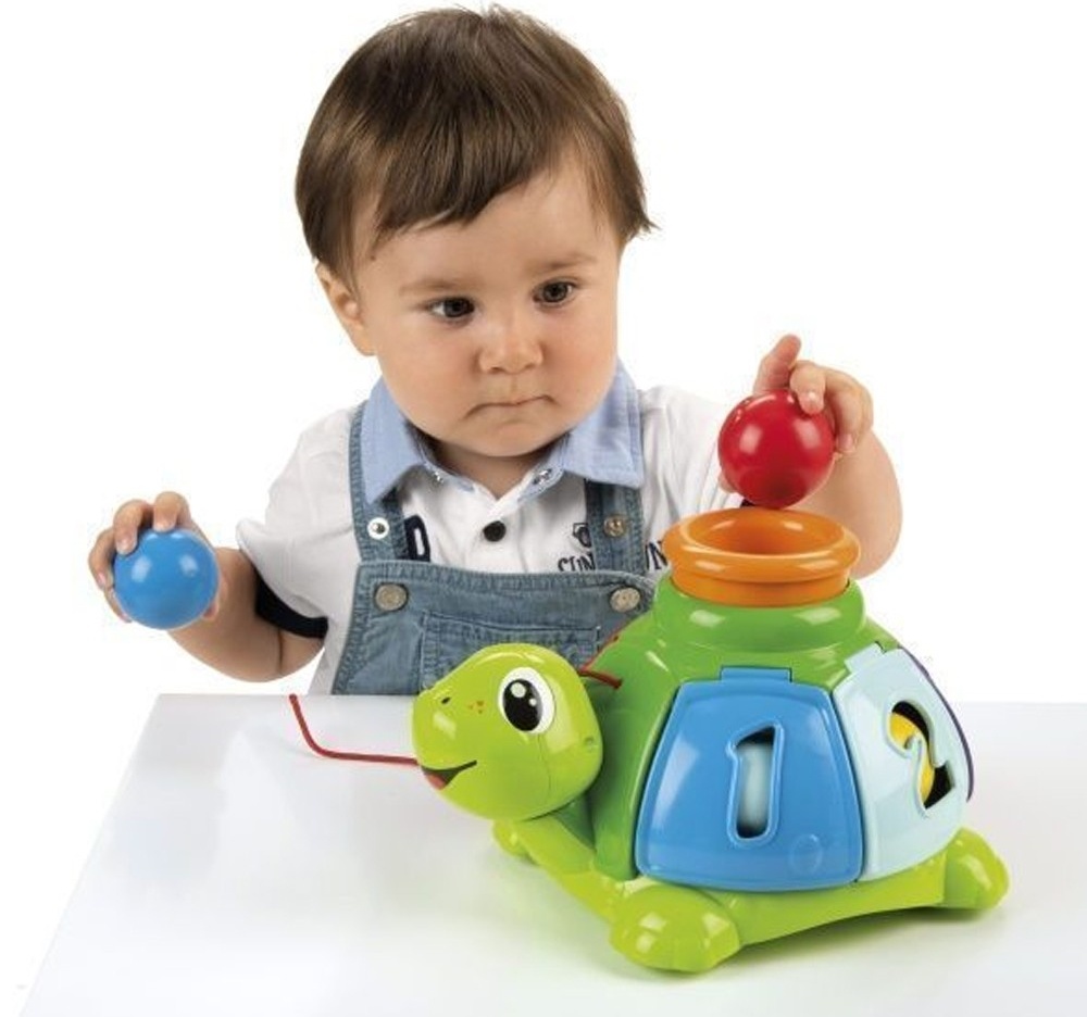 Потрясающая черепаха, много интересных занятий! Черепаха - это игрушка на веревке с забавными мелодиями, которые стимулируют движение детей! Его 5 цветных шариков доставят дополнительное удовольствие вашим малышам, которые должны просунуть их через отверстие в панцире черепахи, а затем, нажав оранжевую кнопку ... СЮРПРИЗ! Все двери откроются одновременно, и шарики вырвутся наружу. Эта супер веселая и увлекательная игрушка учит первым числам, причинам и следствиям, а также стимулирует различные ручные действия!