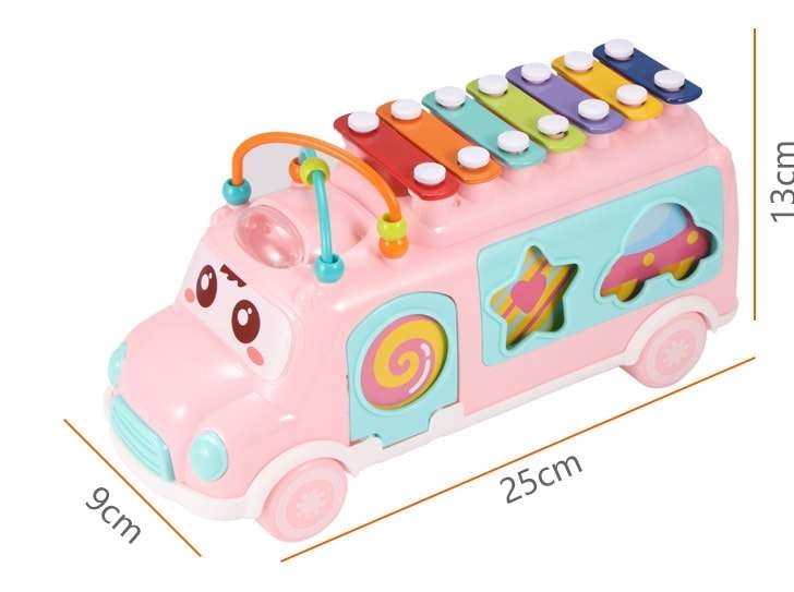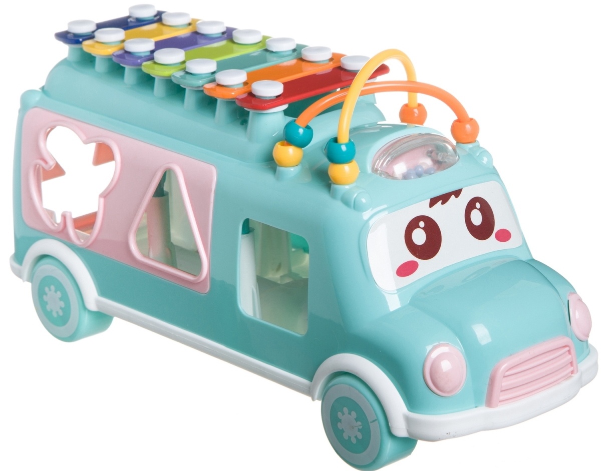 Развивающая игрушка Автобус-ксилофон, фирмы Huanger (Хуангер). Это яркий ксилофон-сортер с множеством интересных деталей и возможностей. Автобус с ксилофоном и сортером развивает внимание, усидчивость, логическое мышление и творческие способности! Сортер с 6-ю разными по форме отверстиями с английскими буквами и цифрами, с 7-ю пластиночками разной тональности со специальной палочкой в комплекте, у которой есть специальное место и которая не потеряется, а еще за нее можно катать автобус. Мини-лабиринт с бусинками для развития мелкой моторики. Сам автобус очень функциональный: у него открываются дверцы, откуда можно доставать и складывать элементы сортера, чтобы они всегда были на своем месте! А еще, внутри можно хранить всякие детские вещицы - очень здорово, красиво и многофункционально!