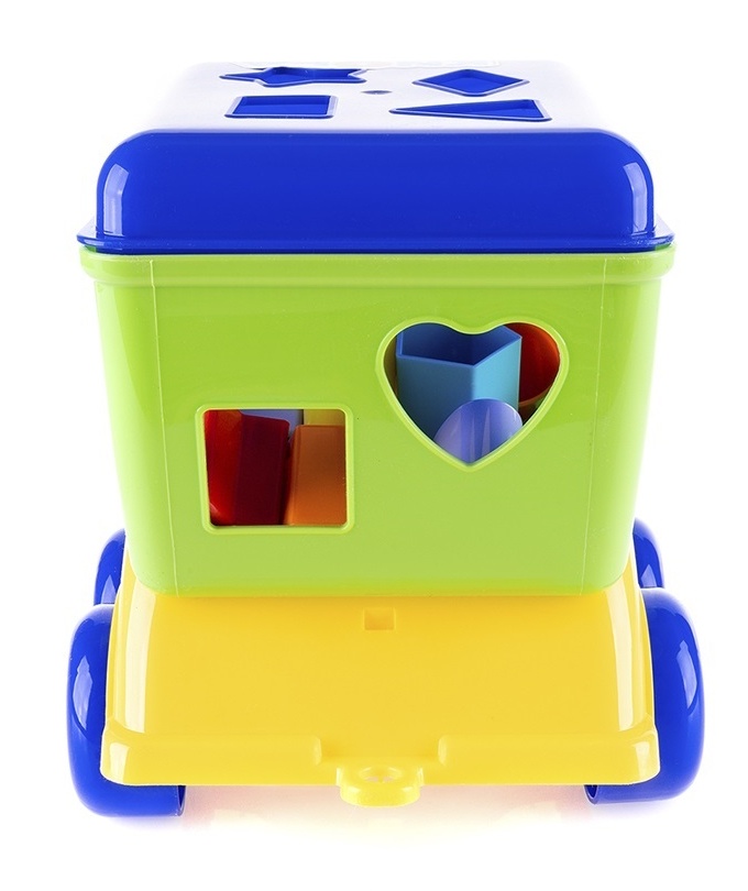 Яркая машинка-сортер подходит для игры в доме и на улице. В песочнице с такой игрушкой можно затеять масштабное строительство, ведь в кузове так удобно перевозить «стройматериалы». Прочный безопасный пластик, удобные детали сортера долго прослужат малышам. Фигурки с 12 цифрами познакомят ребенка с геометрическими формами, цветами и цифрами. Благодаря выпуклой форме деталей их можно использовать в качестве штампов для песка или пластилина.