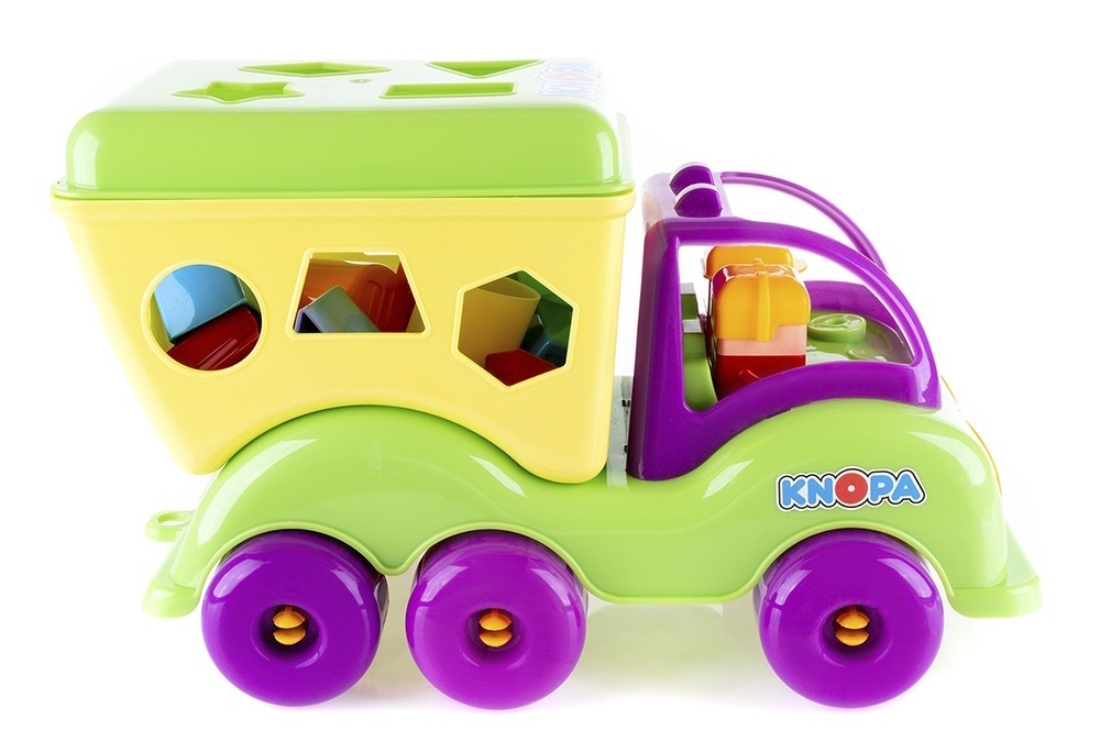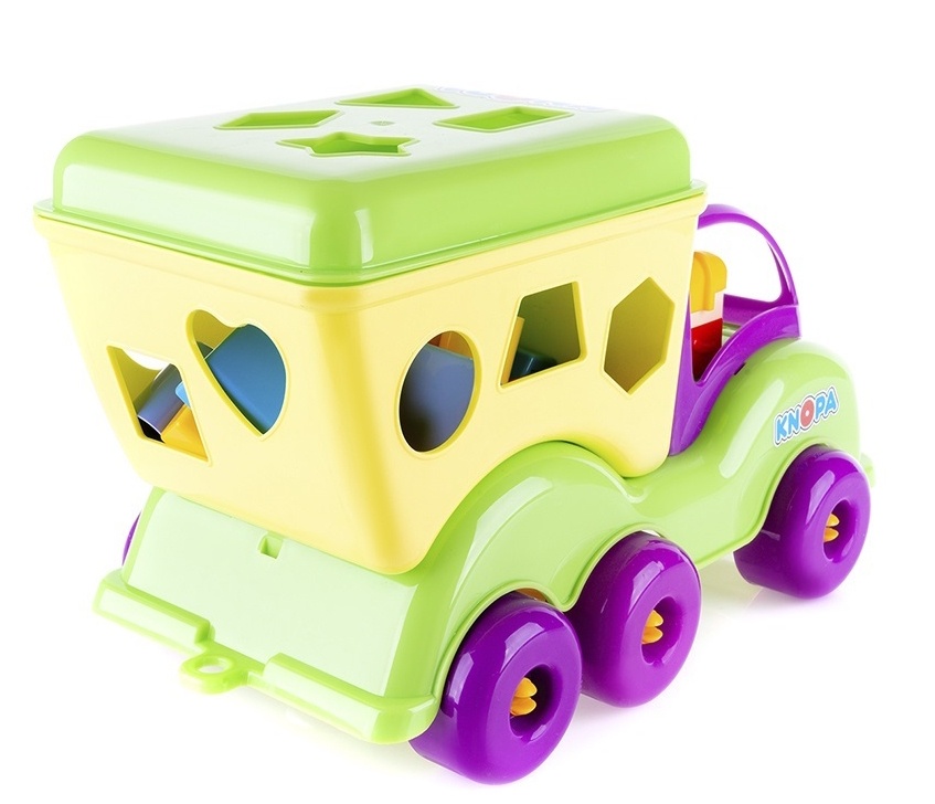 Яркая машинка-сортер подходит для игры в доме и на улице. В песочнице с такой игрушкой можно затеять масштабное строительство, ведь в кузове так удобно перевозить «стройматериалы». Прочный безопасный пластик, удобные детали сортера долго прослужат малышам. Фигурки с 12 цифрами познакомят ребенка с геометрическими формами, цветами и цифрами. Благодаря выпуклой форме деталей их можно использовать в качестве штампов для песка или пластилина.