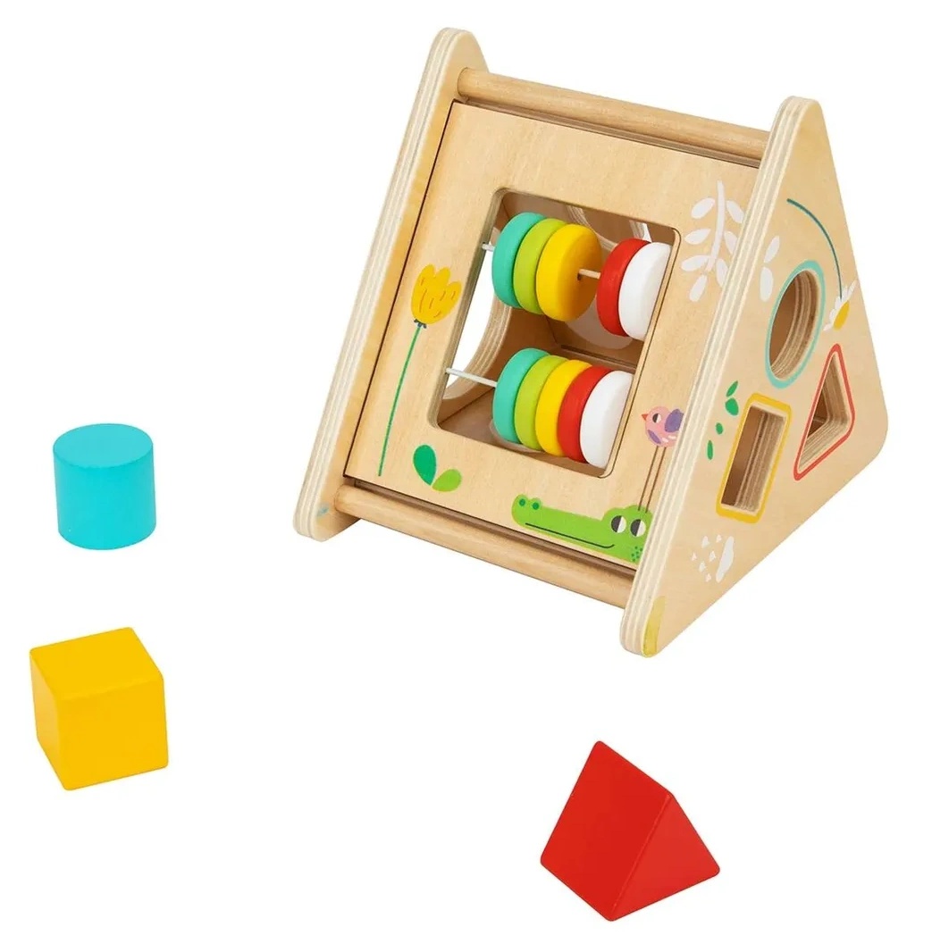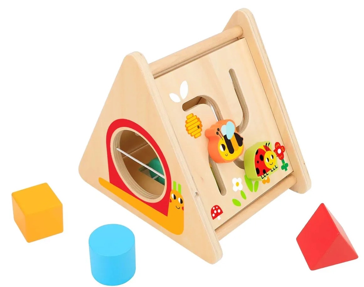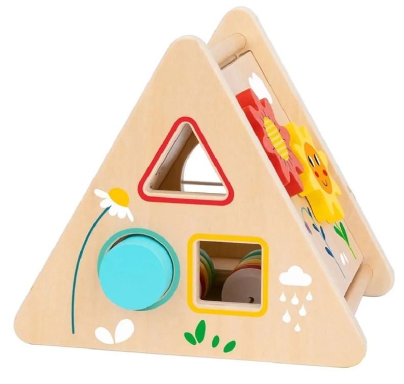 Удивительная развивающая деревянная игрушка 5 в 1 по методике Монтессори. Каждая сторона треугольника представляет уникальные возможности. Сортер с разноцветными геометрическими фигурами. Лабиринт с пчелой и божьей коровкой. Механизм с шестеренками. Счеты. Этот разноцветный Activity Triangle очарует всех детей. Подобные игры способствуют развитию мелкой моторики и зрительно-моторной координации. Обучают малыша формам и цветам, развивают логику, пространственное восприятие, навыки решения проблем и дают ощущение собственных успехов и достижений. Игрушка изготовлена из высококачественных материалов, покрыта нетоксичной краской на водной основе и совершенно безопасна для малышей. Для детей от 12 мес.