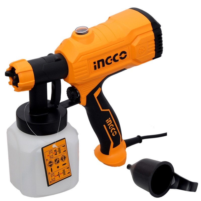 Краскопульт электрический INGCO SPG3508 INDUSTRIAL применяется для быстрого и равномерного нанесения красящих составов на различные поверхности.
