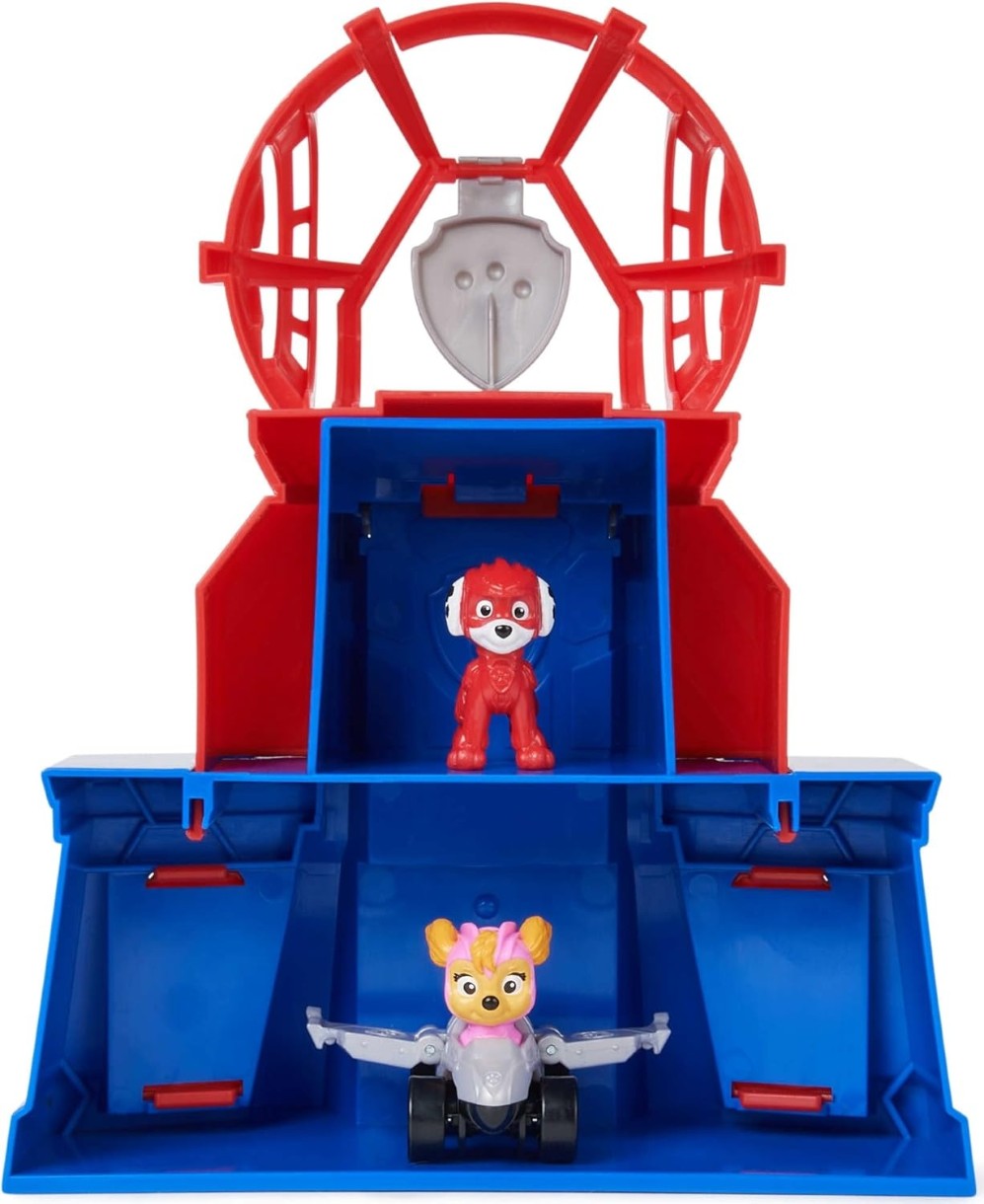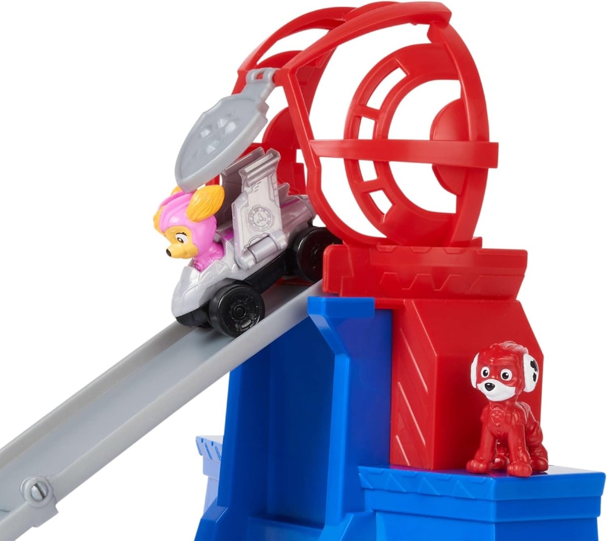 Играйте фигуркой героя Маршалла на башне, а когда придет время миссии, опустите рампу и приготовьтесь к действию. Поместите машину Скай на вершину башни и подтолкните ее, чтобы помочь ей спасти ее! Прямо как в фильме, да?