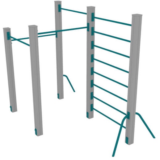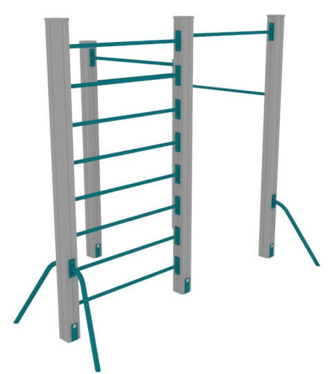 Элемент спортивного оборудования для спортивных и детских площадок. Состоит из турников разной высоты и шведской стенки. Турник и шведская стенка рассчитаны на использование детьми в возрасте от 12-17 лет.