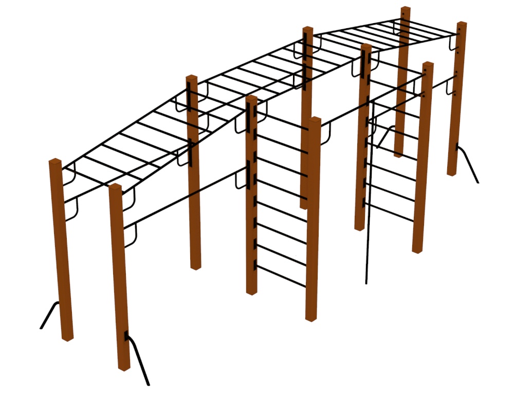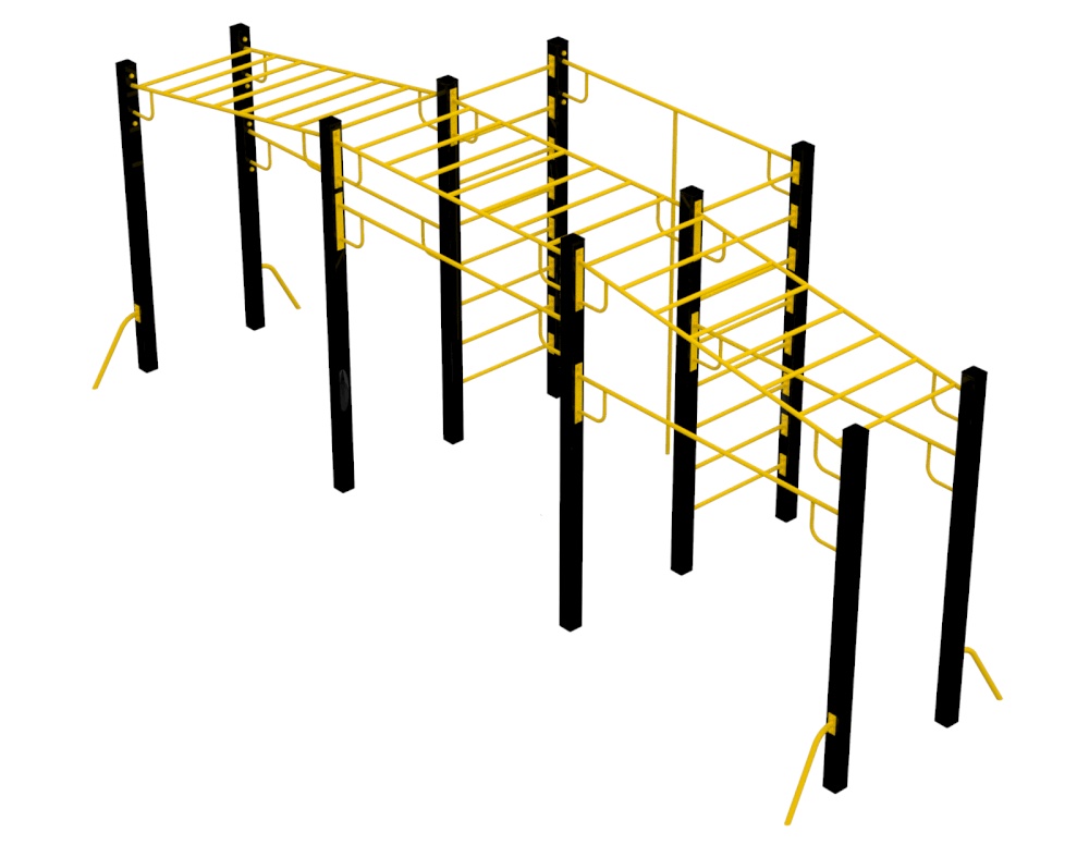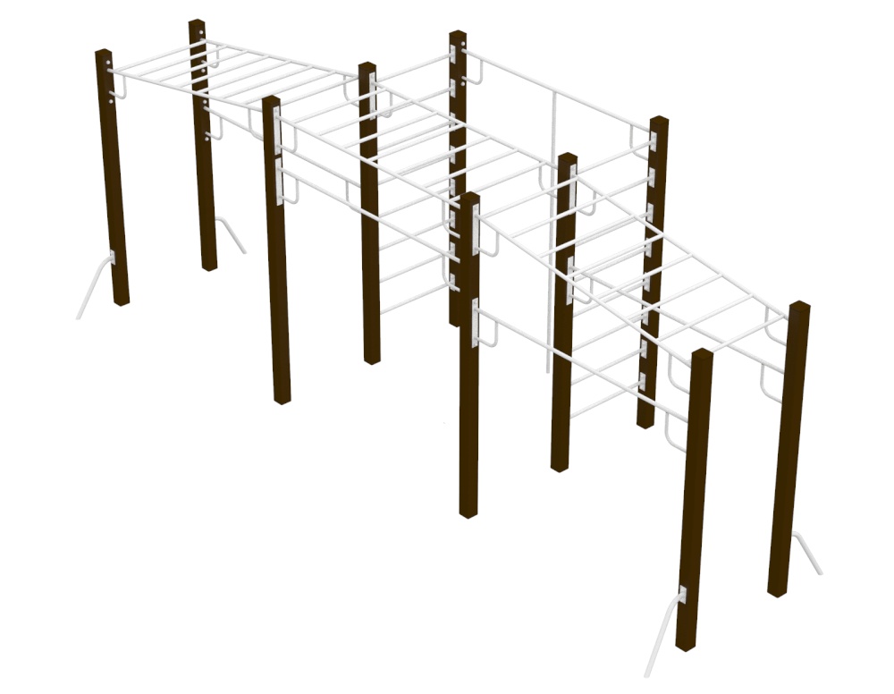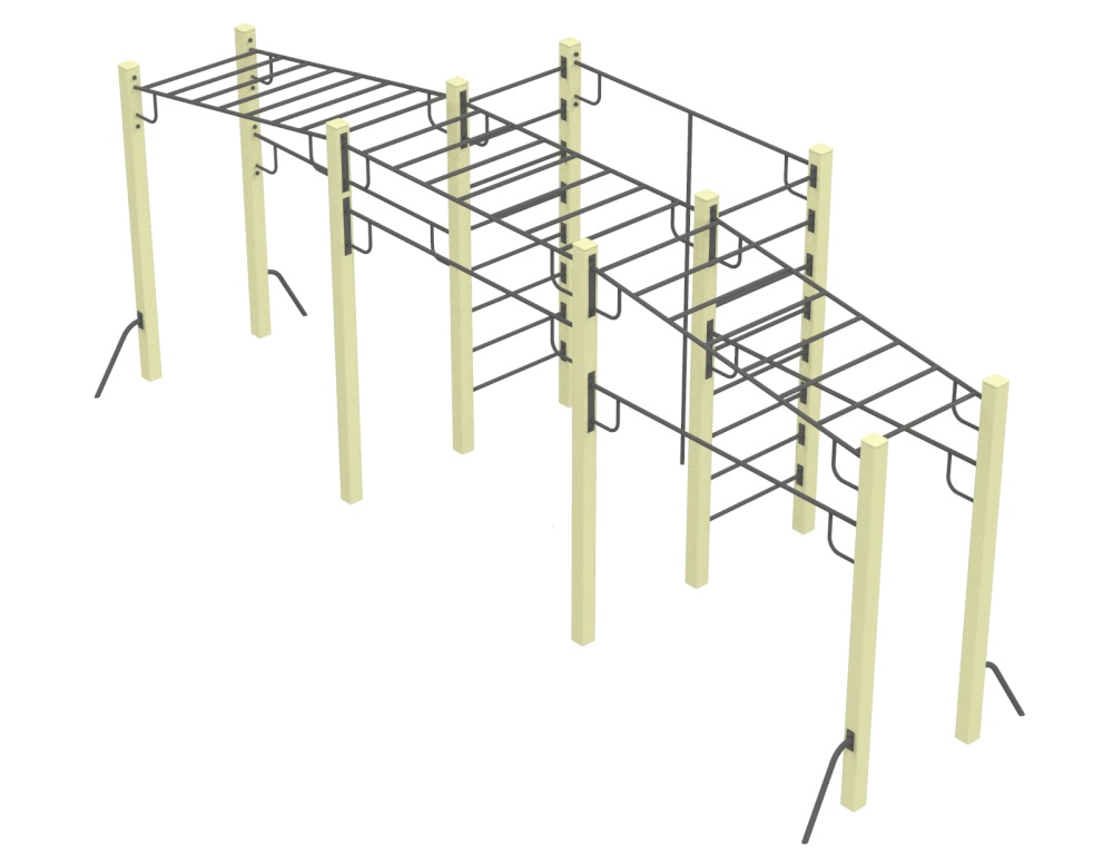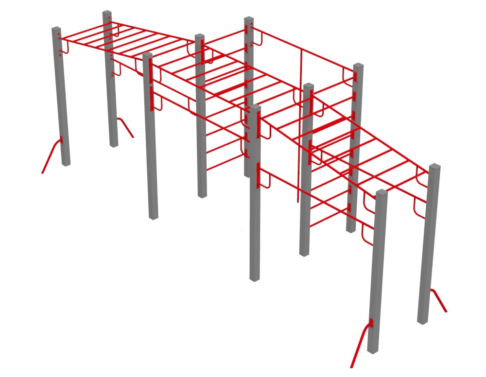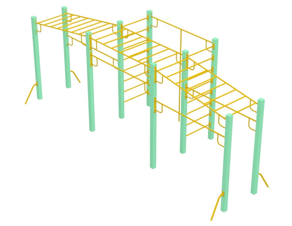 Многофункциональный спортивный комплекс "Мега" состоит из трёх рукоходов, двух шведских стенок, трёх турников. Комплекс, по желанию заказчика, может комплектоваться дополнительными спортивными элементами. Спортивный комплекс "Мега" рассчитан на использование детьми в возрасте от 12 до 17 лет.