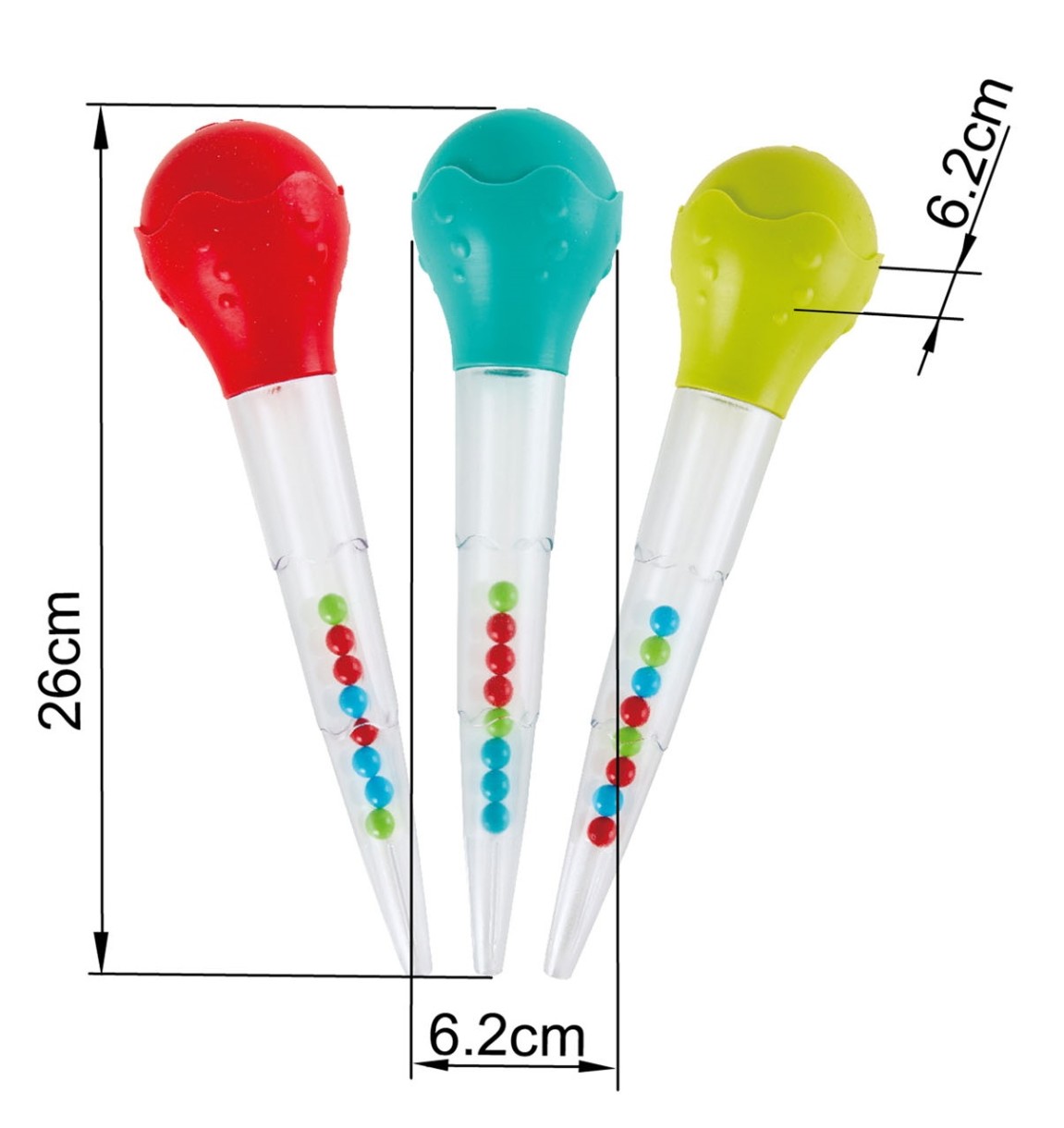 Заполните эти игрушки для ванны водой и наблюдайте, как бусинки внутри танцуют. Сожмите игрушку для струи воды!