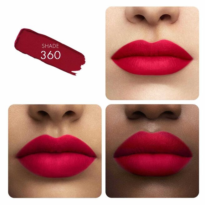 Уникальная текстура оставляет ощущение легкости и позволяет достичь эффекта «второй кожи» и «обнаженных губ». В чем же секрет? Сочетание матирующих элементов и масла карите придает губам чувственность и наполняет их сияющим матовым цветом в течение 12 часов.**
