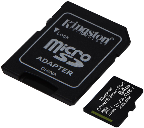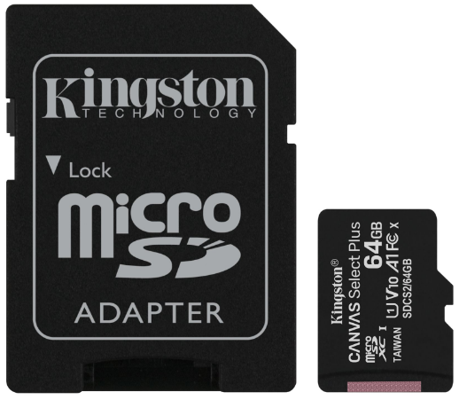 Карта памяти Kingston microSD 64Gb Class10 A1 UHS-I + SD Adapter (SDCS2/64GB)