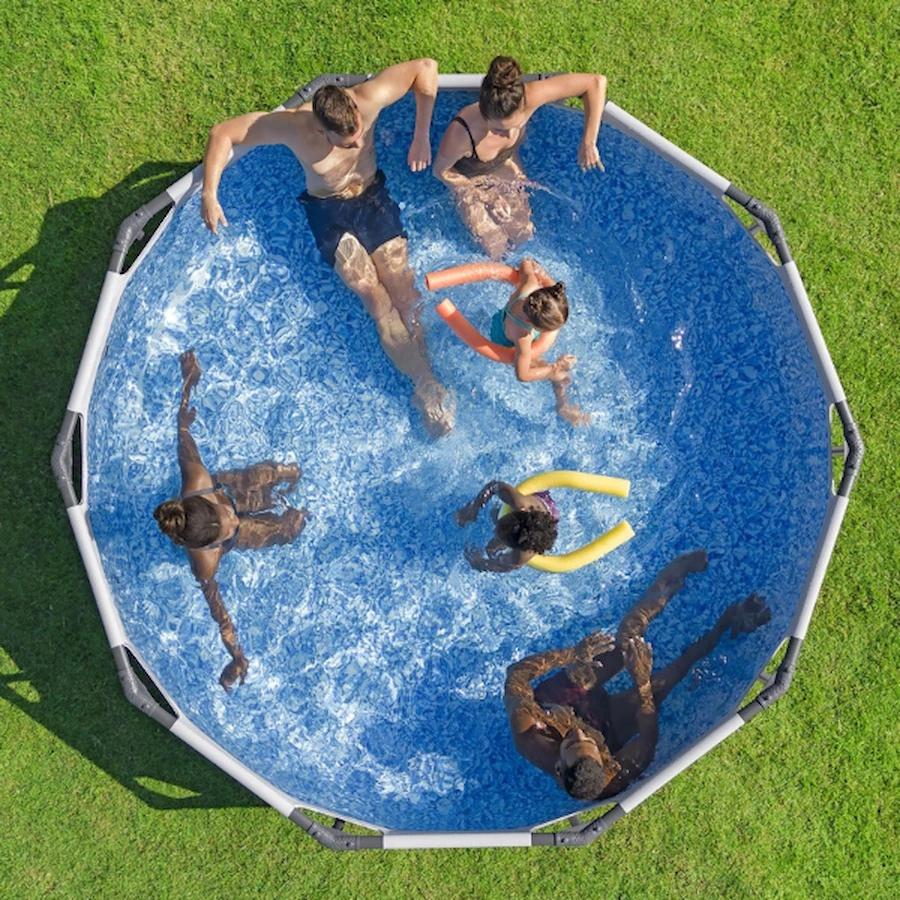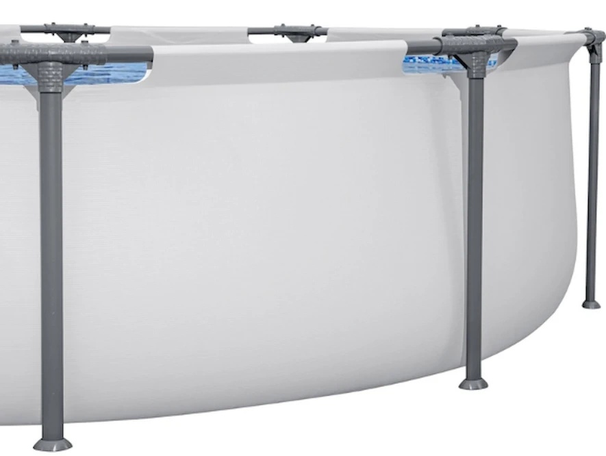 Каркасный бассейн Bestway 56408 отличается высокой прочностью и устойчивостью. Чаша выполнена из высококачественного трёхслойного ПВХ: два слоя плотного винила и между ними сетка из полиэстера для особой прочности. Снаружи чаша светло-серого цвета, внутренняя поверхность оформлена под мозаику. Каркас металлический, покрытый пластиком, предотвращающим появление коррозии.