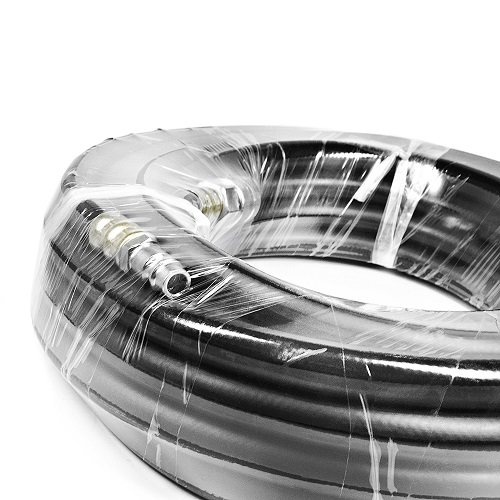 Изготовлен шланг из резинового материала, благодаря чему выдерживает высокое давление, гибкий и стойкий к повреждениям.