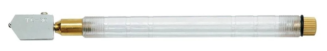 Масляный стеклорез оснащен подвижной рабочей головкой с режущим элементом из твердого сплава. В рукоятке имеется масляный резервуар , который используется для постоянной смазки лезвия во время резки. В комплекте также имеется емкость для заливки масла в ручку ножа. Используется для резки стекла.