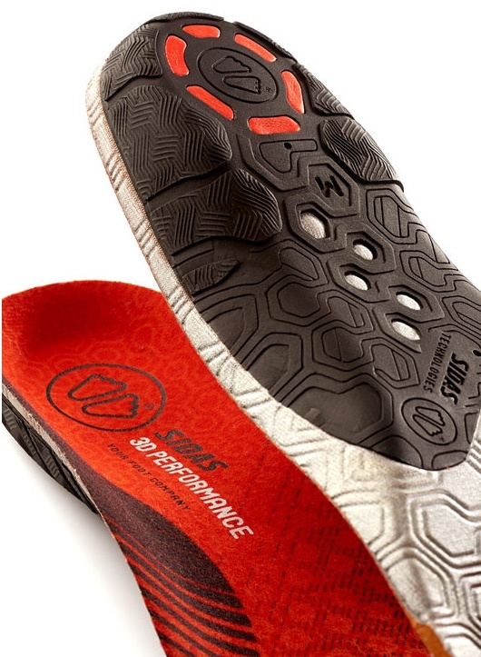 Благодаря трёхмерной форме и точности изгибов, конструкция работает на равномерное распределение веса спортсмена по подошве и усиление фиксации стопы.
