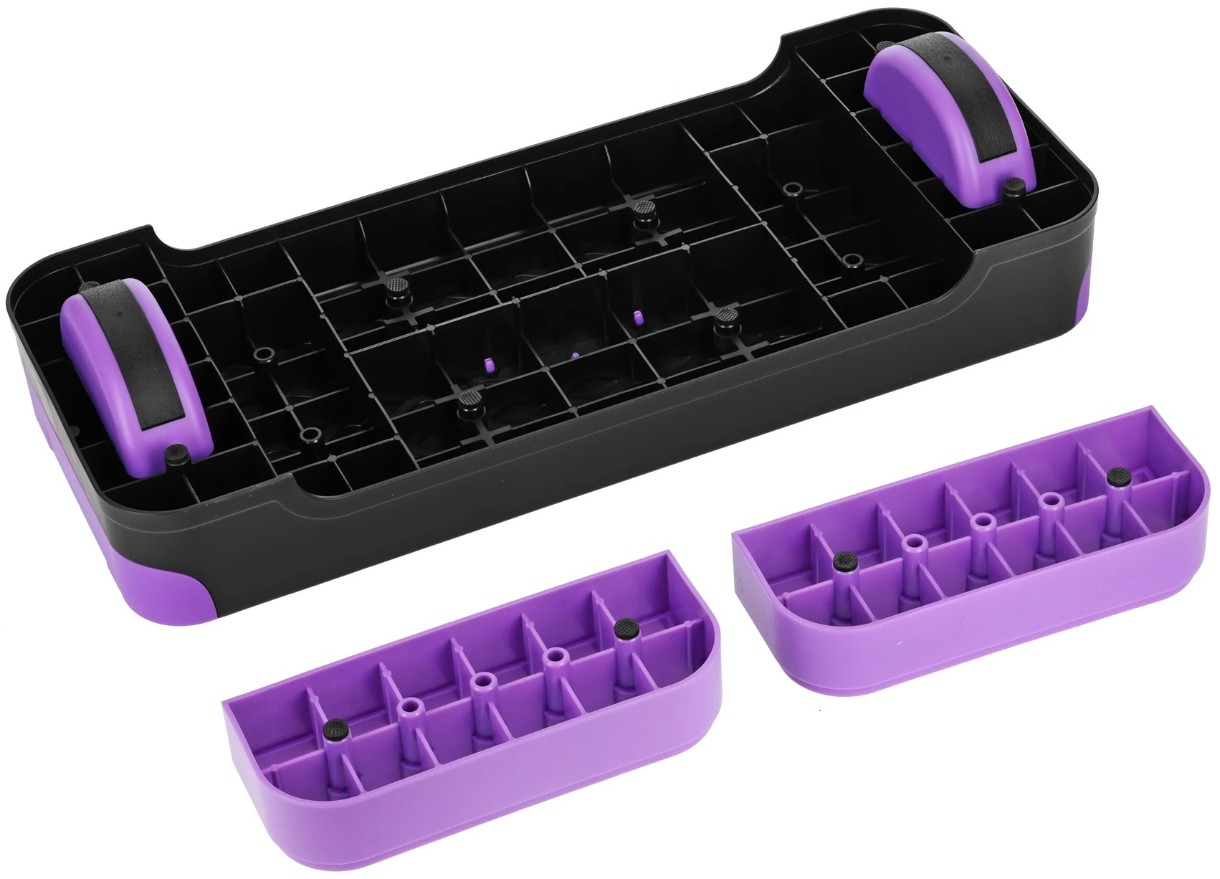 Особенностью модели являются балансировочные подставки, которые устанавливаются под платформу и создают нестабильную поверхность. Это помогает активировать глубокие мышцы, улучшить координацию и развить равновесие. Поверхность степа покрыта антискользящим слоем, обеспечивая безопасность даже при интенсивных упражнениях.
