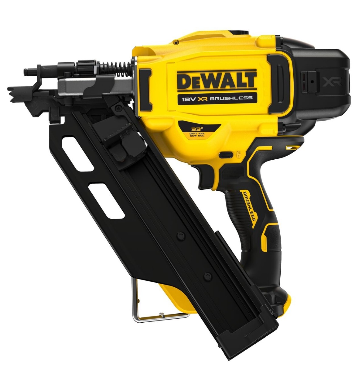 Улучшенный двигатель Brushless обеспечивает мощность для забивания кольцевых гвоздей диаметром 90 мм в мягкую древесину и до 63 мм в твердую древесину.