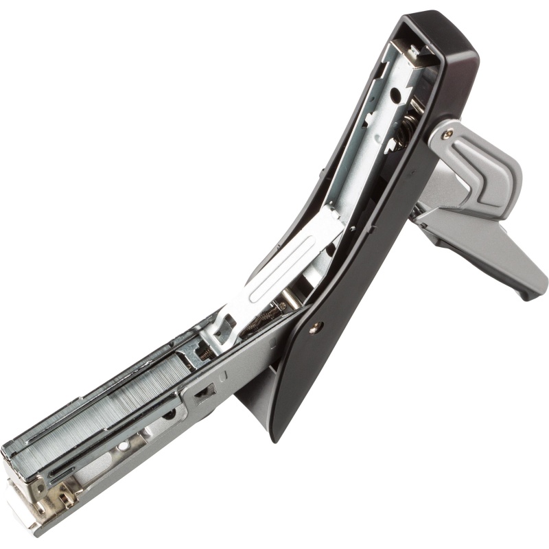 Степлер-плаер Sax 644 с металлическим механизмом и черным, пластиковым корпусом. Благодаря эргономичной форме удобен в использовании. Скрепляет бумагу закрытым, открытым, а также прямым сшиванием до 25 листов. Глубина закладки бумаги: 52 мм.