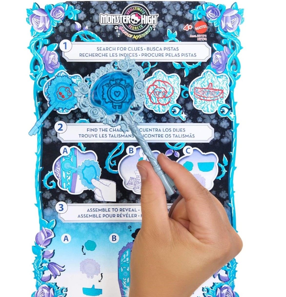Раскройте тайну, откройте ворота Школы Монстров и найдите куклу Школы Монстров с помощью «Секретов Скултайм: Тайны Сада»! Дети могут поиграть в жуткого детектива, разыскивая подсказки на карте с помощью «волшебного» ключа-лупы. По пути они откроют для себя более 19 сюрпризов, которые подарят им необыкновенно жуткие впечатления от распаковки! Когда время игры закончится, дети от 4 лет и старше могут убрать прилагающуюся куклу, одежду и аксессуары в шкафчик, который идеально подходит как для хранения, так и для рассказывания историй!