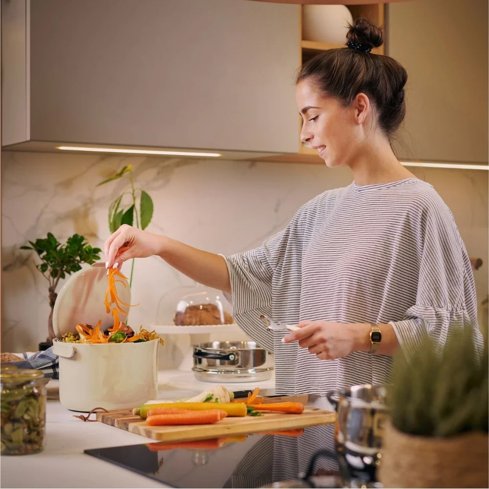 Компостер Skaza — удобное и современное решение для переработки органических бытовых отходов в домашних условиях. Он позволяет превращать пищевые остатки — овощи, фрукты, очистки, кофейную гущу и другие биоотходы — в ценную основу для компоста или органическое удобрение, используя метод ферментации. Такой способ компостирования сокращает объём отходов, устраняет неприятные запахи и делает процесс экологичным и безопасным для квартиры или кухни. Компостер герметичный, благодаря чему в помещении не появляются мухи и гниль, а удобная база и сливной кран дают возможность легко отделить жидкость-удобрение и слить её отдельно. Это отличное решение как для городской квартиры, так и для дачи — особенно если хочется уменьшить количество мусора и получить полезный органический материал для растений.