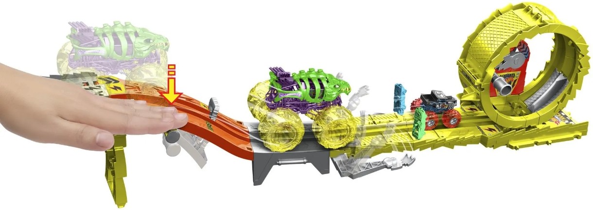 Огромный скелезавр и «Шейкер костей» в масштабе 1:64 соревнуются в гонке. Цель игры — избежать разрушения. Запустите оба автомобиля с помощью переключателя питания. «Шейкер костей» должен обогнать скелезавра, чтобы спастись. Генератор случайных чисел выбирает один из двух вариантов: «Шейкер костей» проезжает по петле или скелезавр ловит его. В набор входят скелезавр в масштабе 1:24, «Шейкер костей» в масштабе 1:64 и 2 разбитых автомобиля.