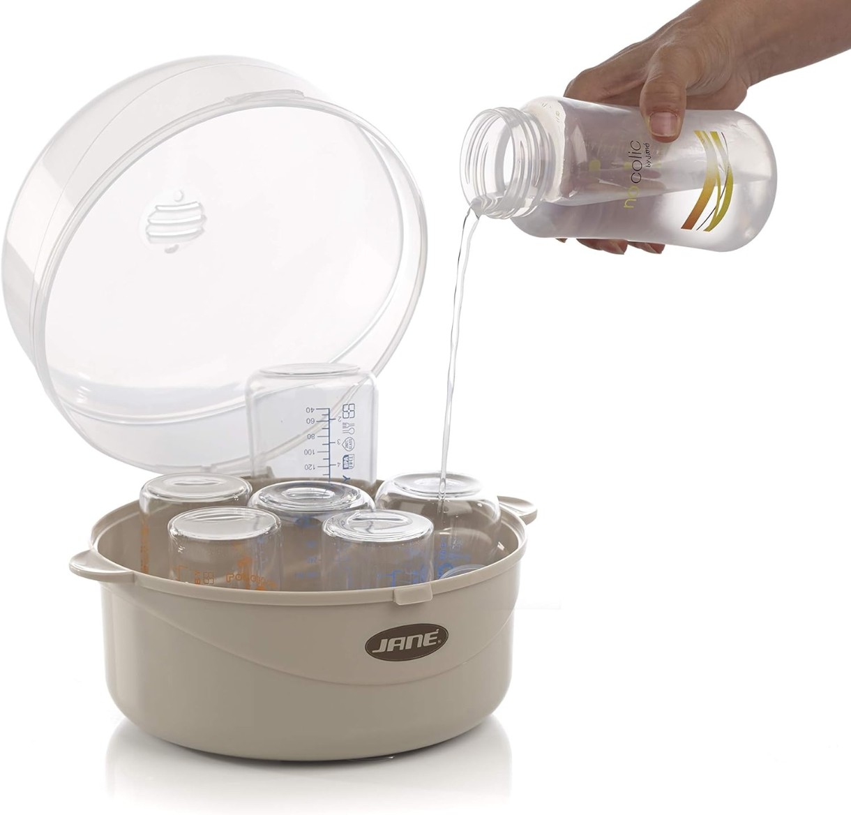 Просто добавьте 100 мл воды и поставьте в микроволновую печь. Всего за 4 минуты бутылочки будут простерилизованы.