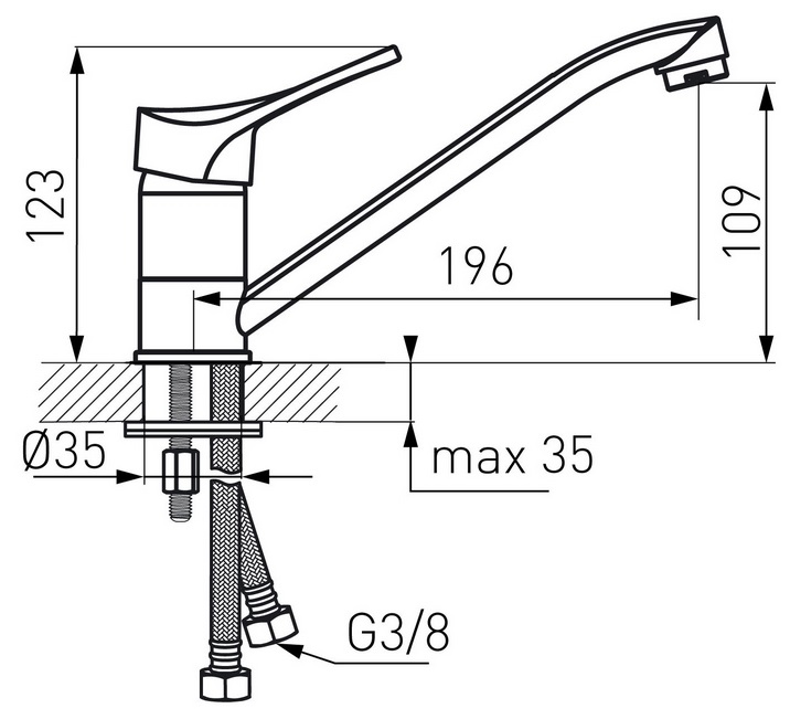 Длина излива196 мм