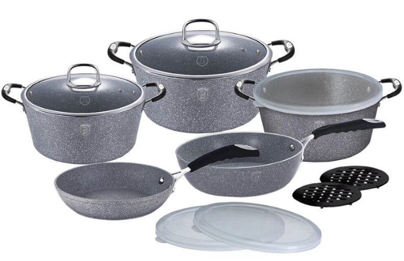 Набор кастрюль со сковородками Berlinger Haus Stone Touch Line BH-6176 станет желанным обновлением на кухне, так как не только практичный и долговечный, но и эстетичный. Стильное оформление комплекта позволяет использовать его в качестве подарка на праздники.