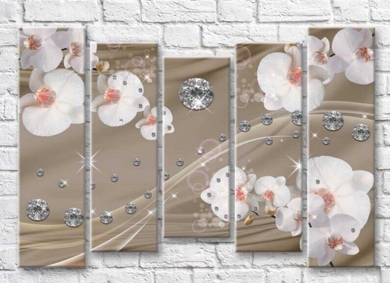 Картина Magic Color White orchids and rhinestones on a Dark/Beige background (3551898)