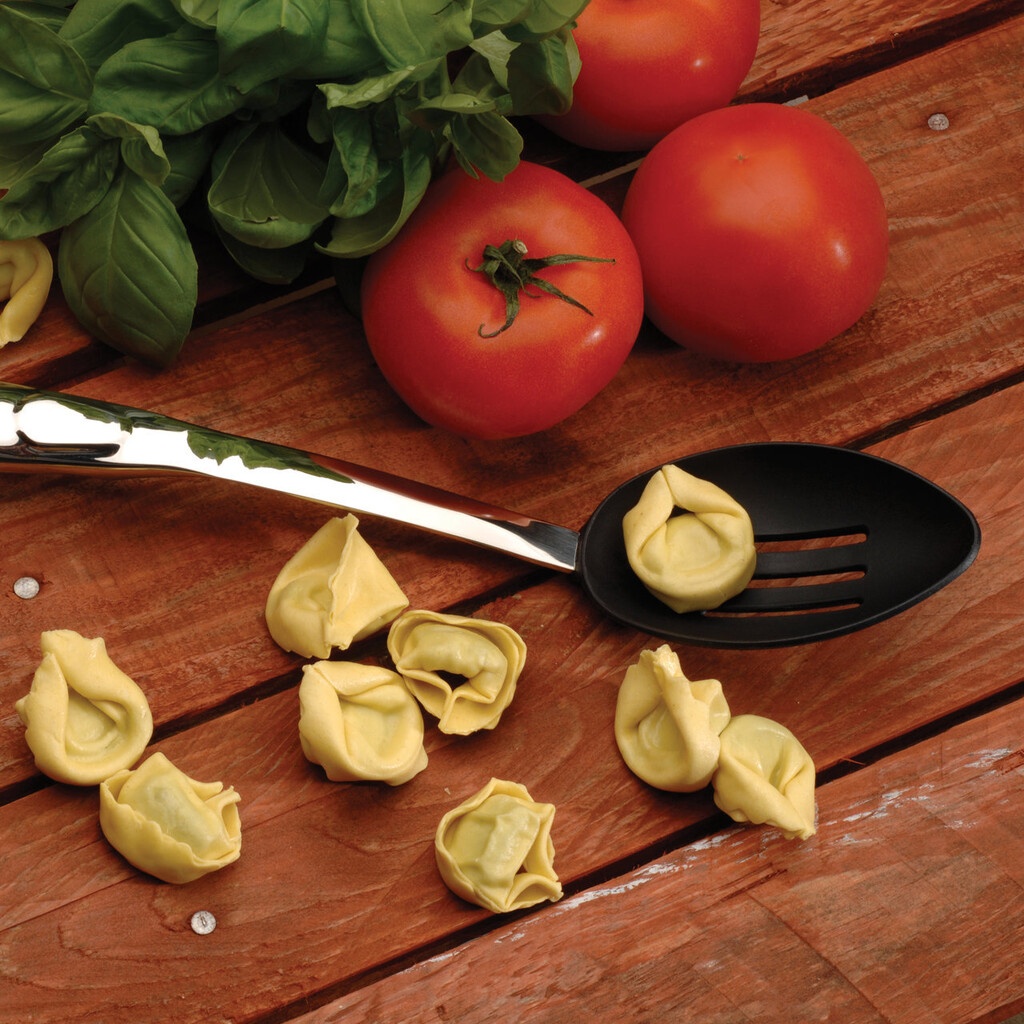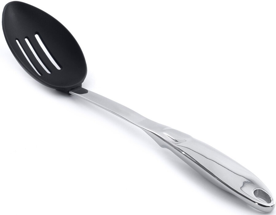 Сервировочная ложка с отверстиями BergHoff Straight 1105710 предназначена для перемешивания салатов и раскладки по тарелкам различных блюд. На ней есть прорези, чтобы стекал лишний жир. Благодаря тому, что рабочая поверхность изготовлена из жаропрочного пластика, ею можно перемешивать и раскладывать пищу из посуды с антипригарным покрытием, не боясь его повредить. Ручка пустотелая с отверстием для подвешивания. Допускается мыть в посудомоечной машине.