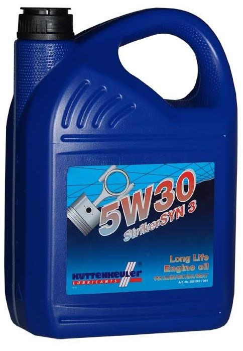 Kuttenkeuler Strikersyn 3 — новое Longlife III синтезированное высокопроизводительное легкотекучее моторное масло на основе новейших технологий. Strikersyn 3/Стрикерсин 3 разработан специально для бензиновых и дизельных двигателей VW-концерна с удлиненным интервалом замены масел ( WIV 3 — систем), включая двигатели с насос-форсункой. Strikersyn 3/Стрикерсин 3 — моторное масло SAE-класса 5W/30 применимо таким образом для интервала замены масел до 500 км и соответственно 2 годам. (обращать внимание на указания завода-изготовителя транспортного средства). Это высокоэффективное моторное масло может назначаться также и в других VW-двигателях всех систем, за исключением R5-, V10 TDi двигателя с насос-форсункой, без и с сажевым фильтром, требующих спецификаций VW 503, 506, 506.01.