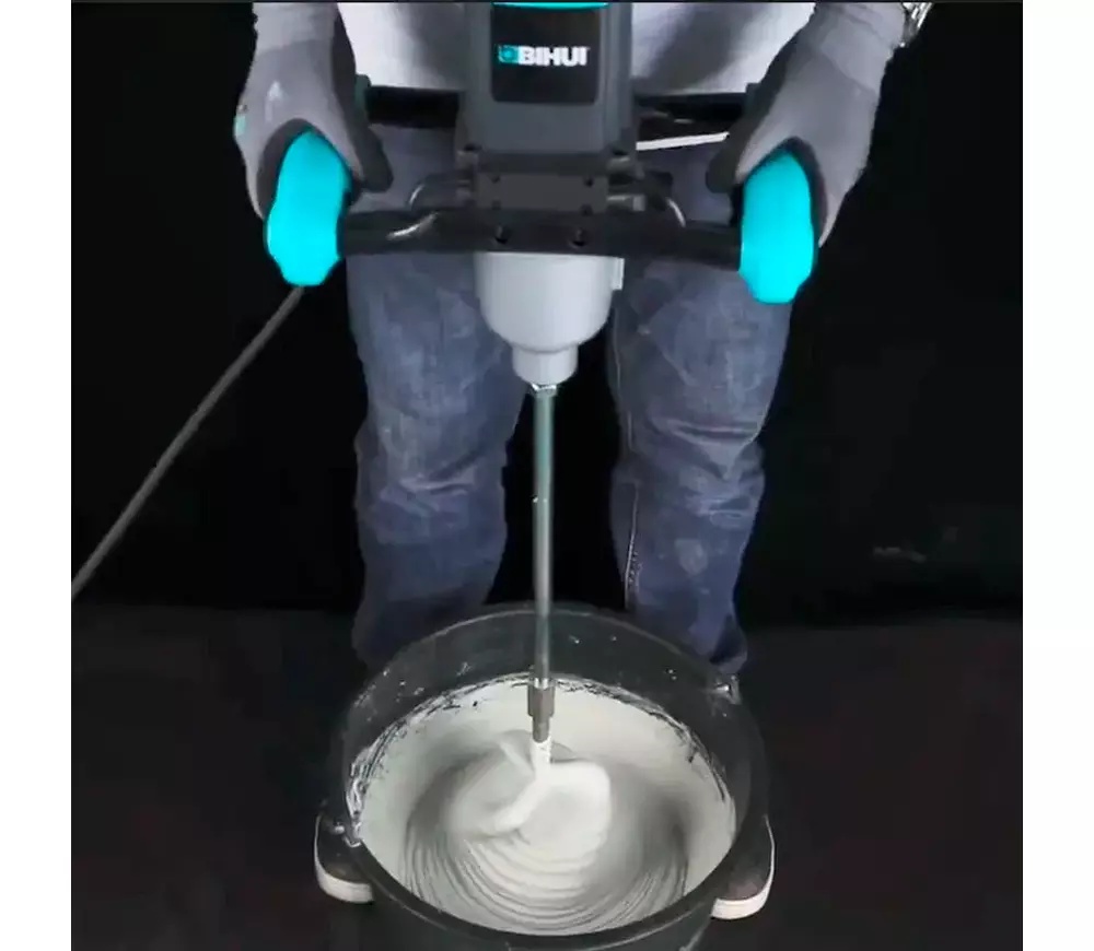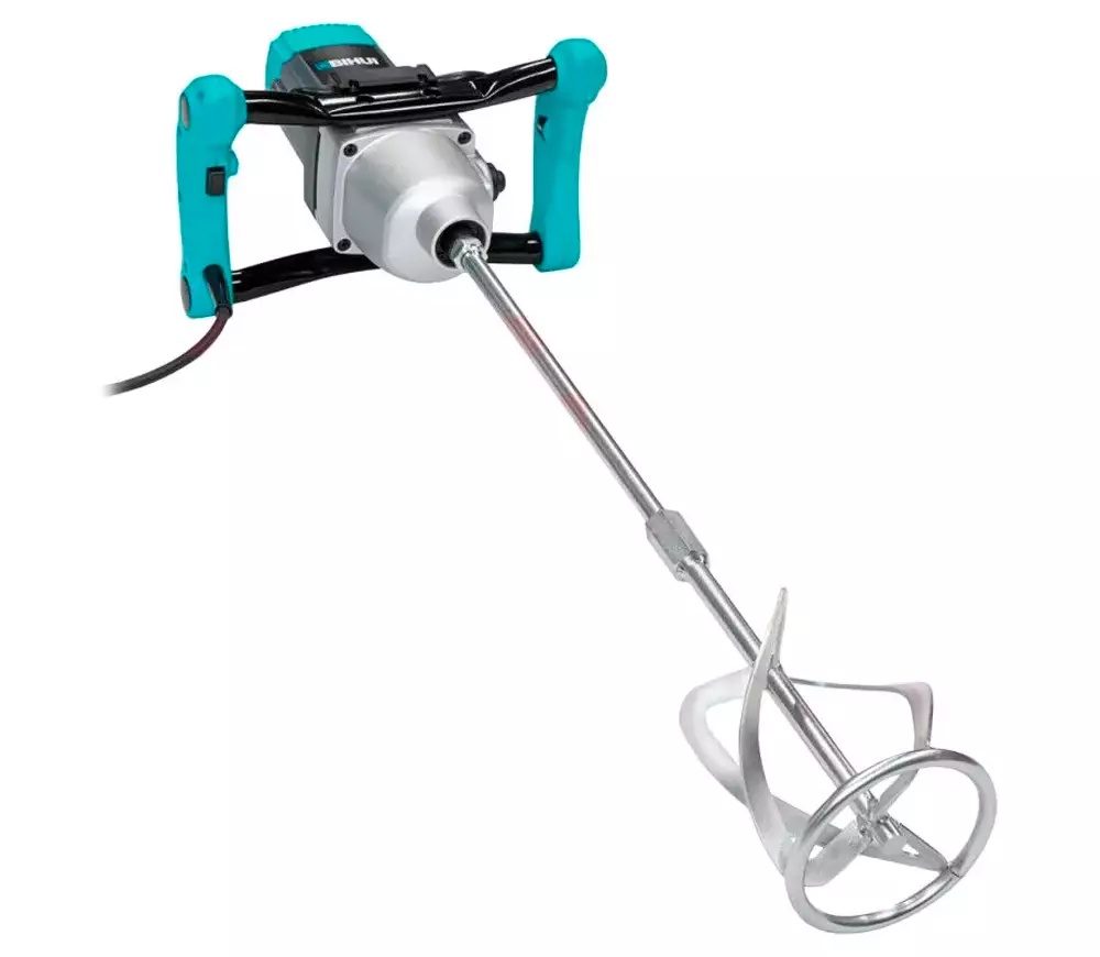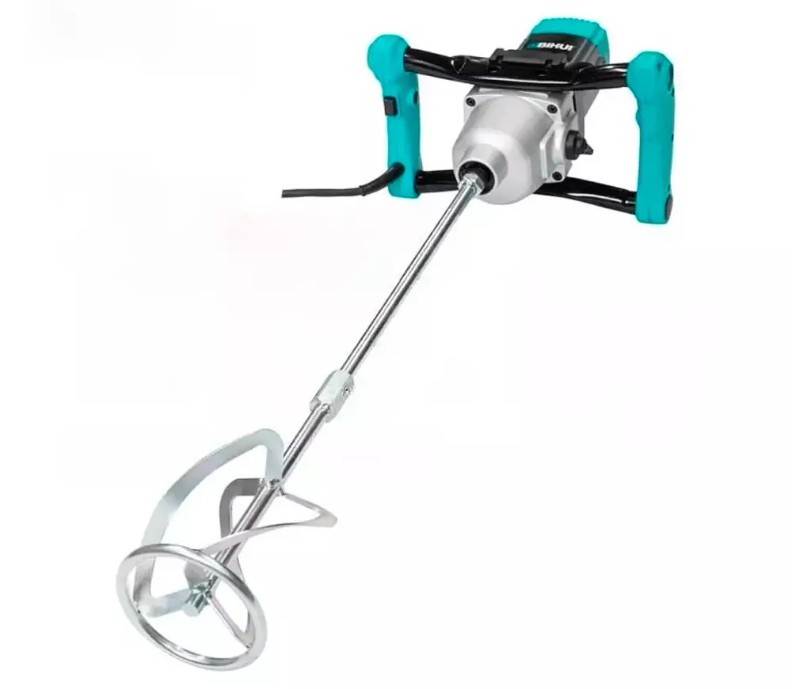 Строительный миксер BIHUI MME1200 электрический с мощным двигателем, двухскоростным редуктором и электронной регулировкой скорости.