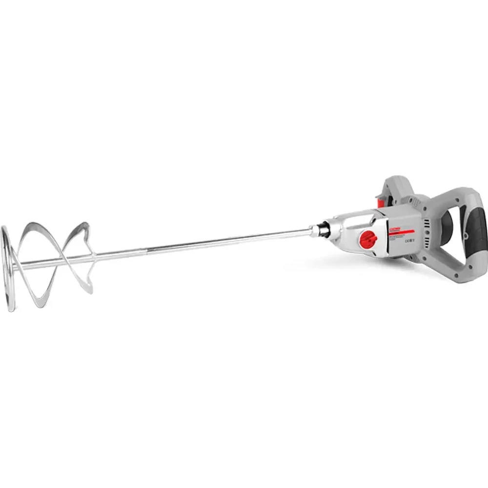 Строительный миксер CROWN CT10182 — это профессиональный инструмент мощностью 1600 Вт, разработанный для эффективного замешивания строительных смесей. Его двухскоростной редуктор позволяет идеально адаптироваться к задаче: первая скорость (180-480 об/мин) обеспечивает высокий крутящий момент для тяжелых растворов, вторая (300-750 об/мин) — для быстрого перемешивания жидких материалов.