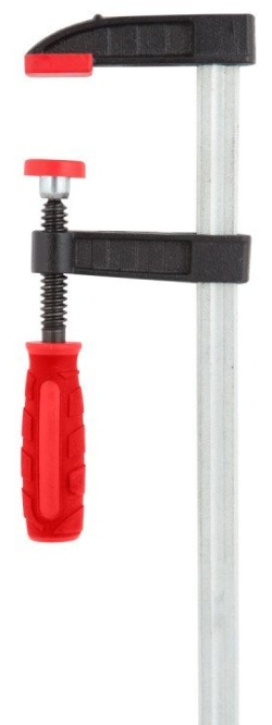 Струбцина столярная 120×1000мм — эргономичная пластиковая рукоятка с противоскользящей поверхностью. Челюсти покрыты пластиком для долговременной защиты от коррозии.