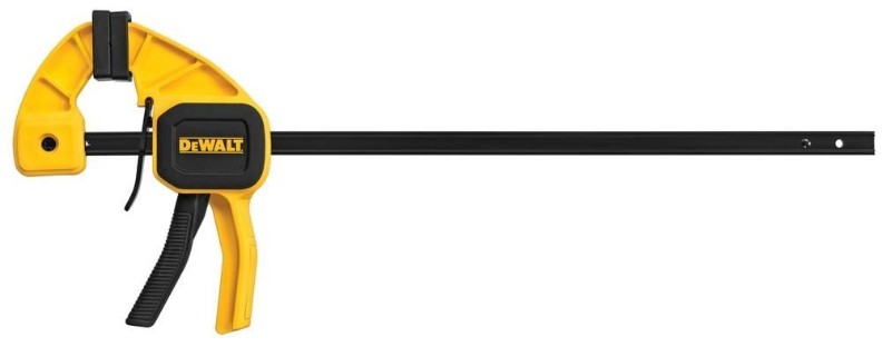 Струбцина быстрозажимная DEWALT 300 мм. Усиленная конструкция для высокой прочности и долговечности. Переставная губка, освобождается при нажатии на кнопку – быстрая трансформация. Стальная термообработанная шина двутаврового сечения высокой прочности. Усилие сжатия 63 кг. Глубина зажима 62 мм