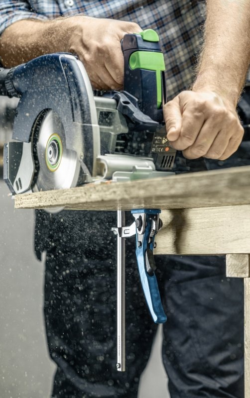 Рычажный зажим для быстрого точечного крепления. Он идеально подходит для склеивания и фиксации различных материалов или деталей, например, в столярных, слесарных и модельных работах. Высокая сила зажима исключает вибрацию во время работы. Позволяет крепить к верстакам, профиль рычага подходит для пазов 12 x 8 мм. Идеально подходит для крепления направляющих шин от Festool, Makita, Metabo, Milwaukee или Hikoki.