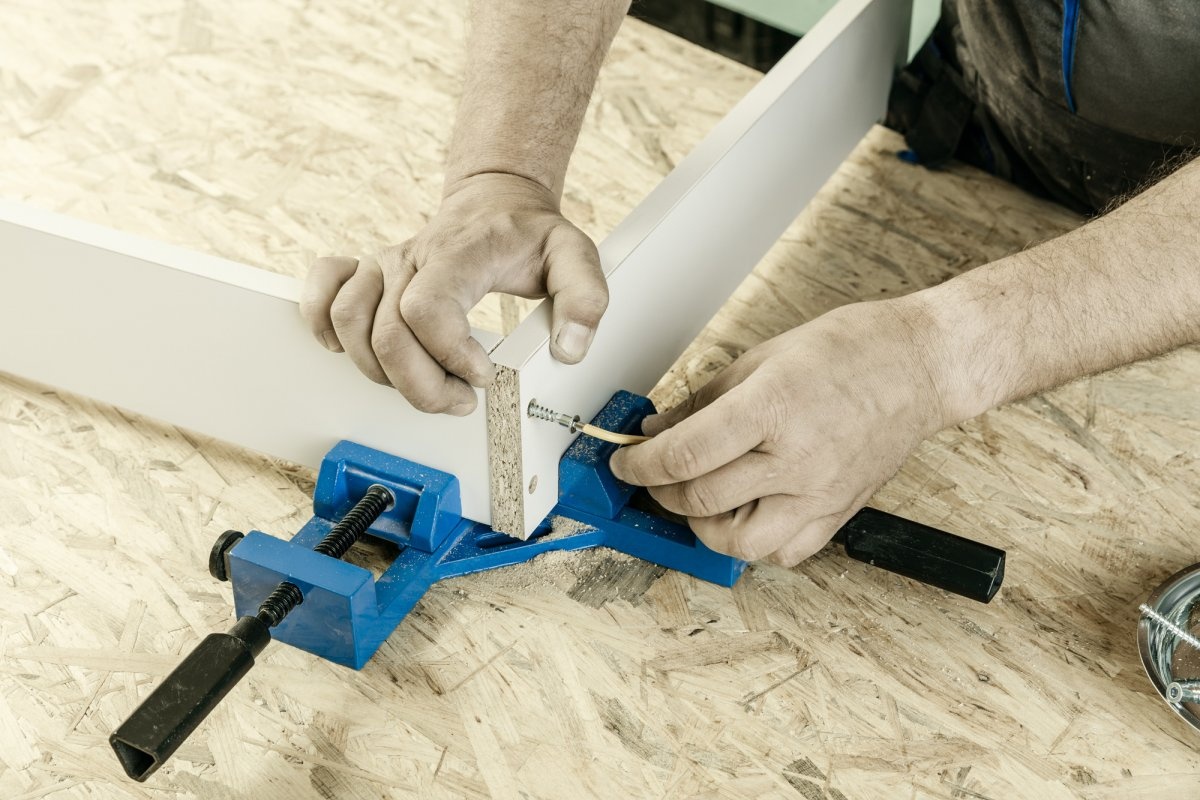 Зажим позволяет получить точный прижим элементов, склеиваемых под углом 90°. Удобен при склеивании, свинчивании, сбивании. Возможность прикрепления к рабочему столу.