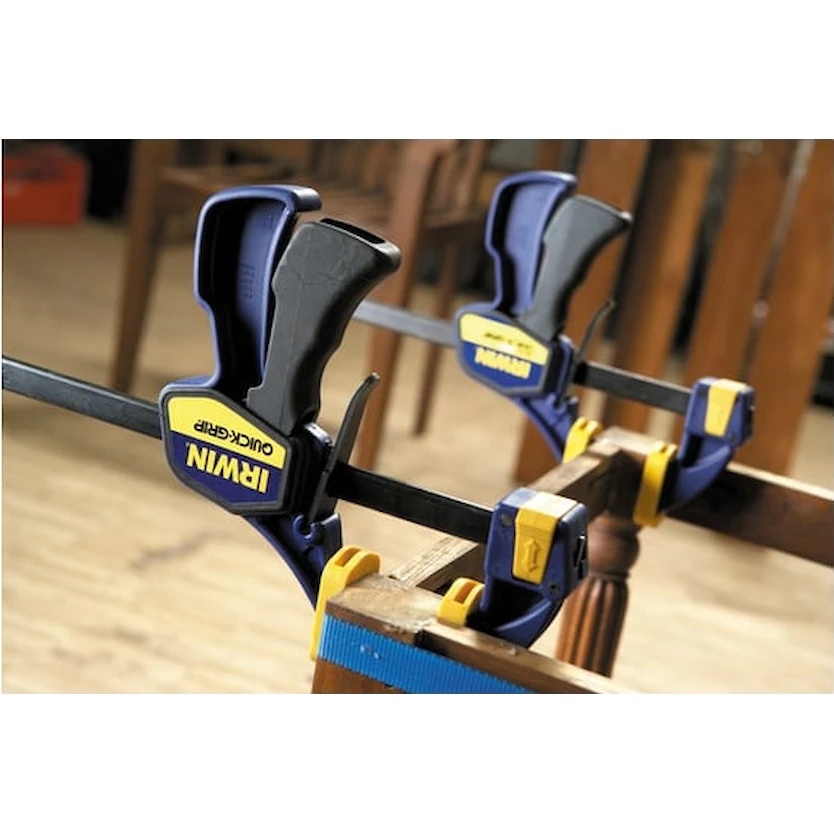 Струбцина Quick-Change IRWIN T536QCEL7 обладает прочной конструкцией, направляющая выполнена из закаленной стали, зажим изготовлен из высокотехнологичного материала. Данное приспособление служит для надежного зажима деталей при их склеивании или ремонте. Сменные губки позволяют прочно зафиксировать деталь, даже с неровной поверхностью.