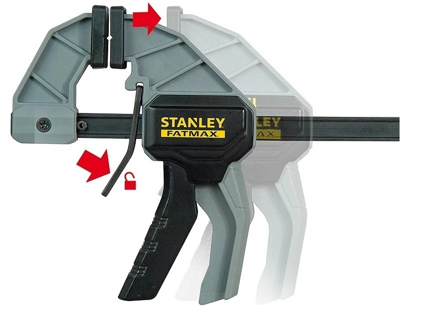 Автотриггерная струбцина Stanley FM M 300 мм FMHT0-83233 выполнена из усиленного нейлона и стали. Имеет возможность работы одной рукой, что делает ее универсальной.