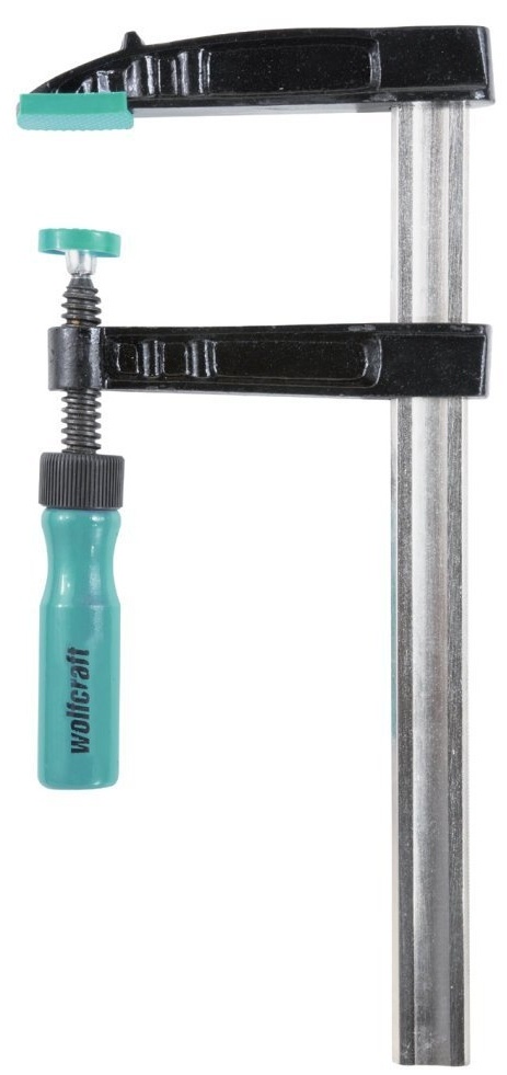 Винтовая струбцина Wolfcraft 3057000 рассчитана на зажим диапазоном до 150 мм. Ее винтовой механизм удобен тем, что позволяет плавно отрегулировать усилие. Это прочный и долговечный инструмент. Прижимные лапки выполнены из цинка, фиксирующий пятачок из усиленного полиамида, который обеспечивает надежную фиксацию, но не портит деталь.