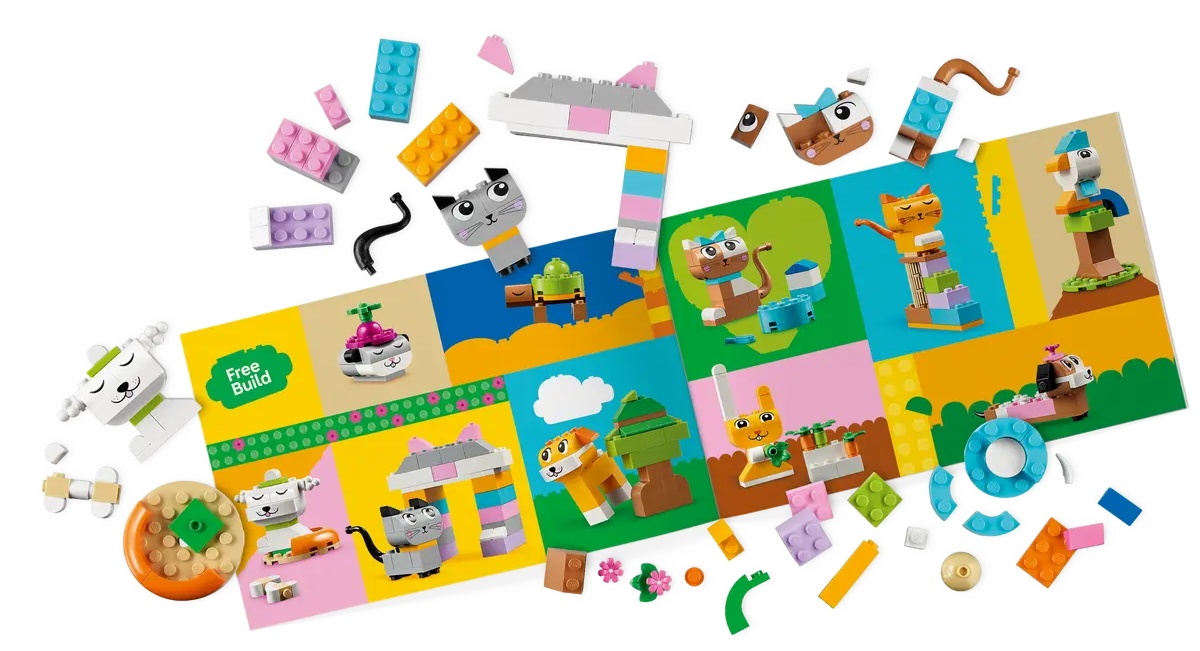 С помощью 450 кубиков LEGO, в том числе специальных деталей с глазами и ртами, а также простых пошаговых инструкций, дети смогут собрать собаку из миски и кости, кошку на подставке, хомяка с яблоком, кролика с морковь и птица на жердочке. Затем, используя включенные в набор предложения по альтернативным цветам, формам и функциям, дети смогут воссоздать своих питомцев по-новому и весело. По мере развития творческих навыков дети смогут воплощать в жизнь свои собственные идеи. В комплект входит руководство, содержащее 10 идей, которые помогут начать увлекательное занятие по сборке.