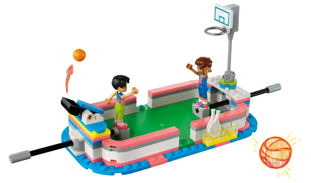 Порадуйте любящих спорт детей в возрасте от 8 лет и старше этой игрушкой LEGO® Friends Sports Center (41744). В набор входят 4 мини-куклы и множество аксессуаров. Он включает в себя 1 поле, которое можно преобразовать, поменяв местами ворота и сетки для различных видов спорта. В набор также входят держатели для мини-кукол и различные мячи, чтобы дети могли заставить персонажей играть по-настоящему. После футбольной тренировки поменяйте ворота местами с теннисной сеткой и забросайте ее мячами. Затем переключитесь на баскетбольное кольцо и научитесь забрасывать мяч в корзину. Там также есть табло и место для безопасного хранения мячей. Внутри здания спортивного центра дети могут посетить тренажерный зал, стену для скалолазания и раздевалку.