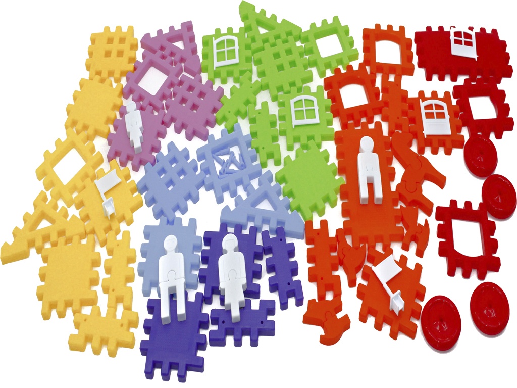 77 элементов. Конструктор 2в1 – детали крепятся между собой как пазлы.
