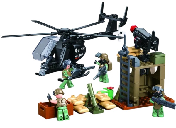 Погрузись в мир военных приключений с конструктором SLUBAN серии Army! Собери бронетехнику, вертолёт, катер, наблюдательную вышку и другие элементы, чтобы разыгрывать захватывающие сражения. В набор входят 744 детали из прочного ABS-пластика, совместимого с другими популярными конструкторами. В комплекте фигурки солдатиков и подробная пошаговая инструкция.