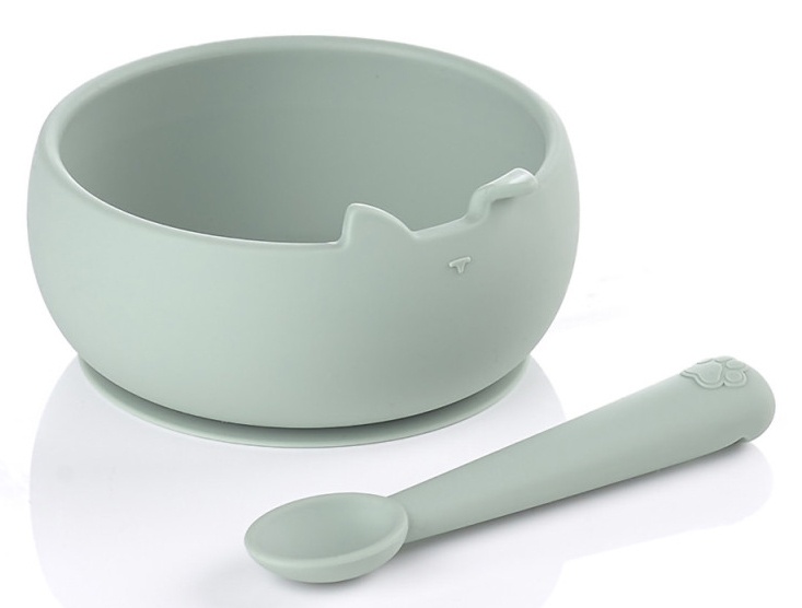 Ложка имеет эргономичный дизайн, который подходит для рук ребенка и помогает ему учиться. Вы можете использовать маленькие выступы на миске в качестве держателя для ложки.