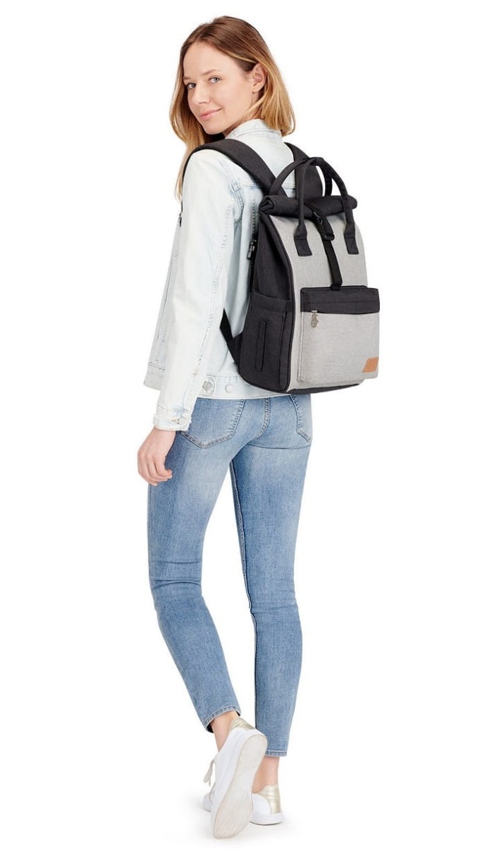 Рюкзак можно повесить на коляску на крючках или носить как стандартный рюкзак.