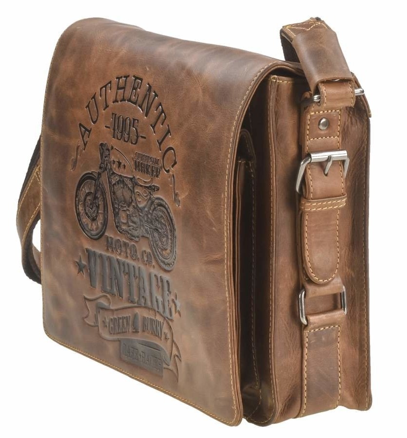Мужская сумка через плечо Greenburry Cafe Racer A4 — стильный и надежный аксессуар для современного мужчины. Изготовленная из высококачественной кожи и украшенная тиснением в стиле «кафе-рейсер», она сочетает функциональность и привлекательный дизайн. Вместительное основное отделение легко вмещает документы формата А4 и бутылку объемом 0,5 л. Также внутри есть отделение на молнии, карман для телефона, три петли для ручек и накладной карман. Передний карман на магнитной застежке удобно подходит для вещей формата А5, а заднее отделение на молнии позволяет держать мелочи под рукой.