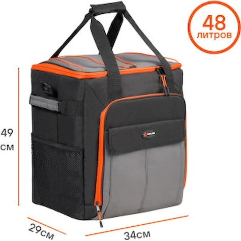 Применяется для длительного сохранения температуры продуктов. Представляет собой вместительную сумку кубообразной формы. Сумка размещена на пластиковом каркасе с колесиками и складной телескопической ручкой для легкой и удобной транспортировки. Имеет трехслойную структуру стенок для максимального сохранения температуры. Изготовлена из высококачественных материалов и имеет полностью герметичный внутренний слой. Спереди и по бокам расположены многочисленные карманы для раздельного хранения мелочей.